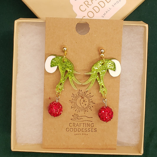 Acrylic Earrings - A Christmas Dream 'Christmas Classic Grinch' - Hypoallergenic Posts