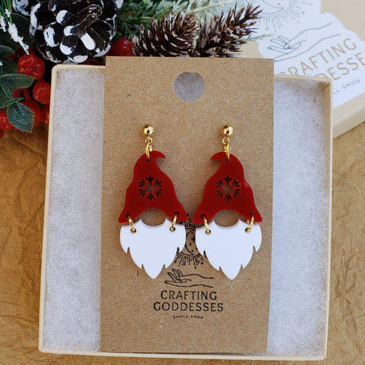 Acrylic Earrings - A Christmas Dream 'Classic Gnome Santa' - Hypoallergenic Posts