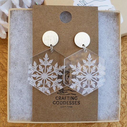 Acrylic Earrings - A Christmas Dream 'Engraved Christmas Snowflake' - Hypoallergenic Posts